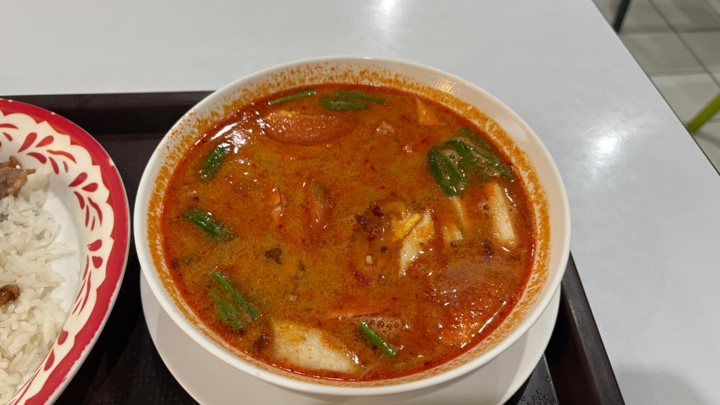 - トムヤムクン:酸味と辛味が絶妙なスープ。海老のダシがきいている。