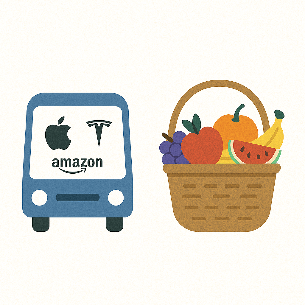 初心者にもイメージしやすいようにたとえてみましょう。eMAXIS Slim S&P500は「米国の有名企業500社に集中投資する」ものなので、たとえるなら一国(米国)の大企業だけが入ったバスケットに投資するイメージです。中身はアップル、アマゾン、テスラなどの“元気な企業”ばかり。過去にはテクノロジーバブルなどで大きな利益を上げてきました。しかし、米国経済に強く依存しているため、米国に景気不安が来ると大きく値が振れるリスクもあります。