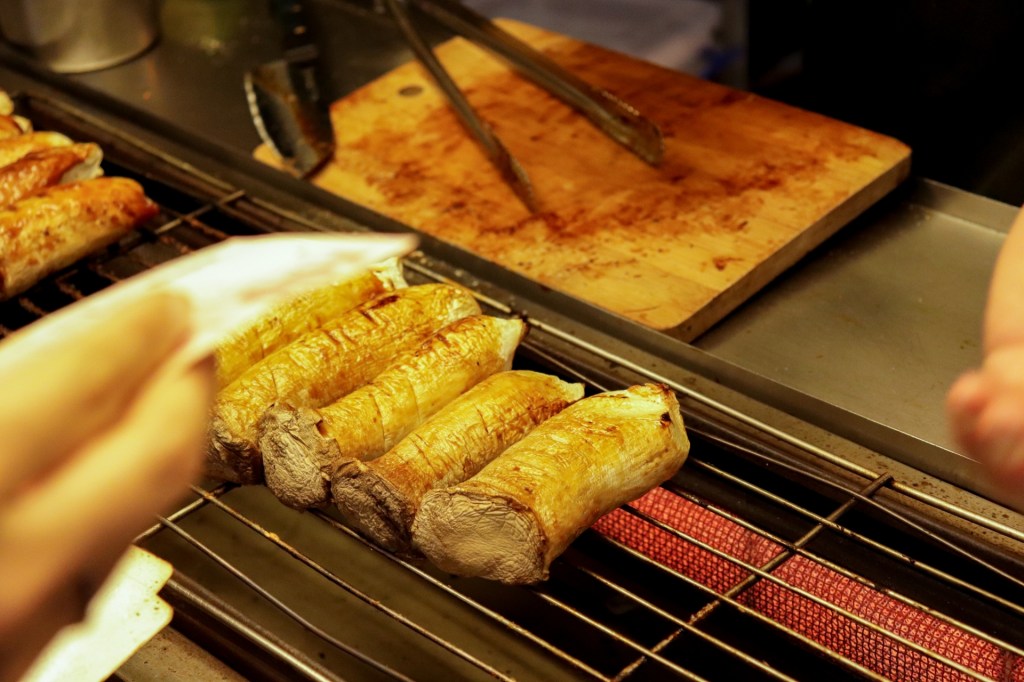 台北市の東側、松山駅前にある饒河街観光夜市は、士林と並ぶ人気夜市です。こちらは一直線に伸びる通りが丸ごと夜市になっており、入口にはきらびやかな牌楼門(アーチ)が立っています。門をくぐるとすぐ右手にある屋台が、この夜市最大の名物胡椒餅(フージャオビン)のお店です。炭火窯で焼かれる肉餡入りパンで、出来たては外はカリッ中は肉汁ジワッ、黒胡椒の風味がピリリと効いて本当に美味しい!常に大行列ですが、一度に複数の窯で焼いているので回転は早く、待つ価値のある絶品です。焼き上がりのタイミングでまとめて提供されるため、意外とスムーズに買えます。