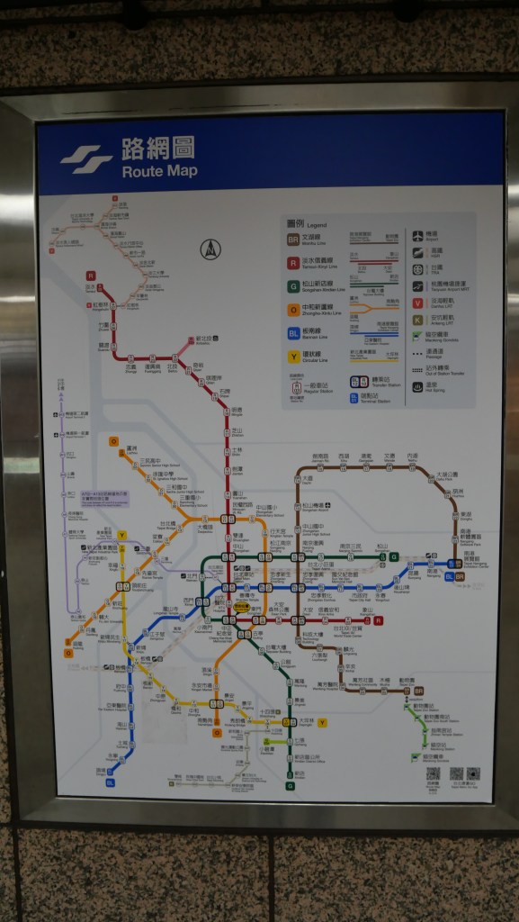 MRTの路線図はカラーでわかりやすく、出口ごとに近隣施設が案内されています。駅構内は清潔で冷房も効いています。自動券売機でトークン(コイン型切符)を買うことも可能ですが、悠遊カードを1枚持っておくと繰り返し使えて割引運賃にもなる(乗車毎2割引ほど)ので断然お得です。