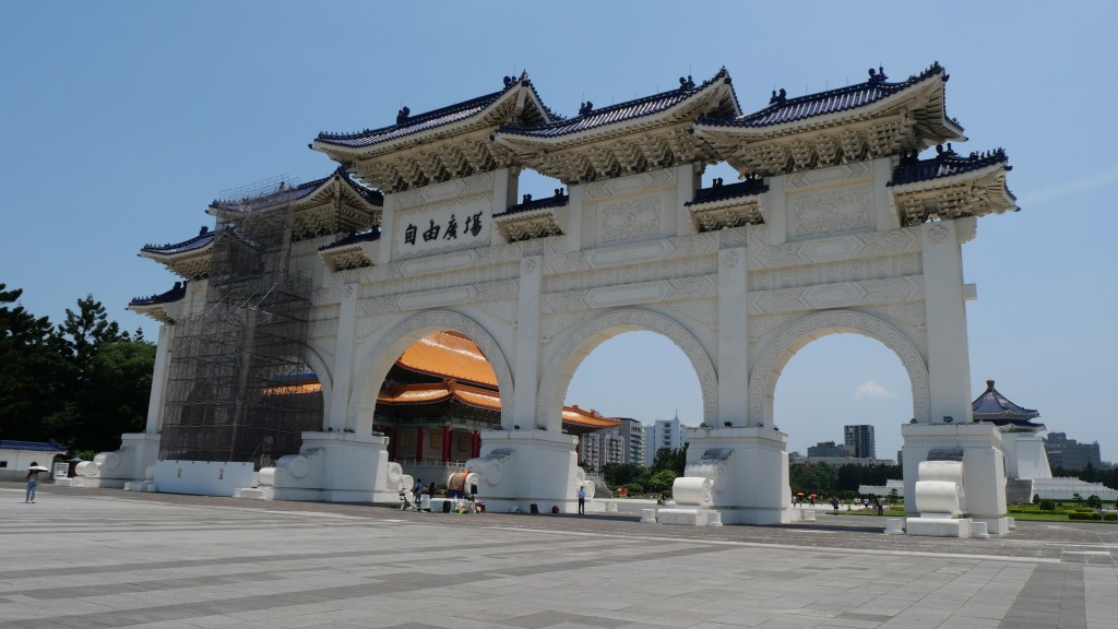 近くの中正紀念堂で、青空の下の広場を散歩しつつ、衛兵パフォーマンスを見学。荘厳な儀式と広大な敷地に、台湾の歴史と文化を感じられます。