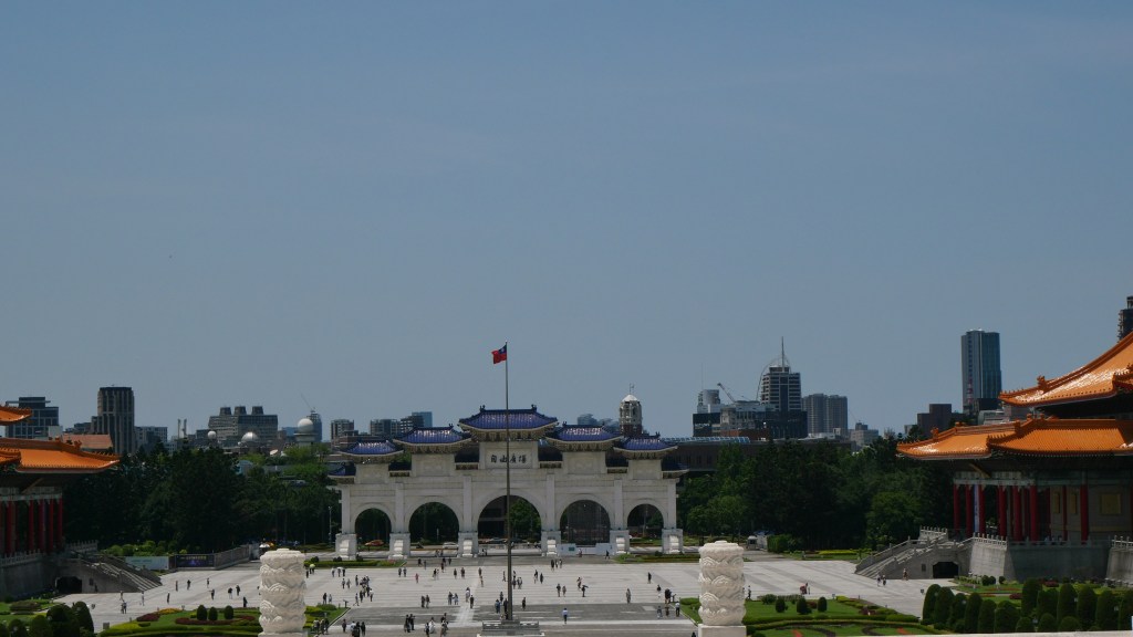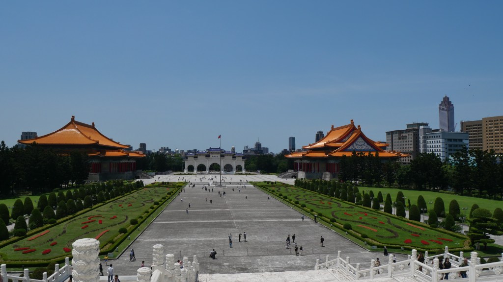 広場に足を踏み入れると、その開放感に思わず「おおー!」と声が出ます。観光客も地元の人も思い思いに散策したり写真を撮ったりしていて、のんびりした雰囲気です。記念堂のメインホールには高さ数メートルもある蒋介石像が鎮座しており、1日に9回ほど衛兵のパフォーマンスが行われます。10分ほどの短いパフォーマンスなので、時間が合えばぜひ見学しましょう。写真撮影OKですがフラッシュは禁止なので注意です。
