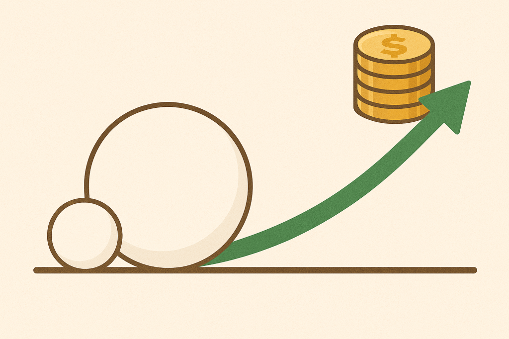 たとえば、毎日数百円を貯金に回すと考えてみましょう。一見わずかな金額でも、1年後にはかなりの額になります。得られた利息を合わせれば、さらに大きな財産に育つ可能性があります。同じように、投資でも少額ずつコツコツ積み立てれば、複利の効果で時間とともに資産が雪だるま式に増えていきます。