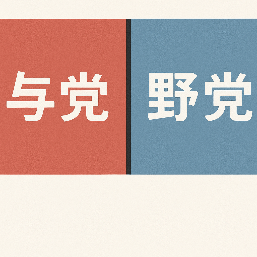 続いて、日本の政治における与党と野党の違いについて整理しましょう。ニュースなどで「与党の○○党」「野党第一党の△△党」と耳にしますが、そもそも何がどう違うのでしょうか?シンプルに言えば、「与党」は現在政権を担っている政党(または政党連合)であり、「野党」は政権に入っていない政党のことです。