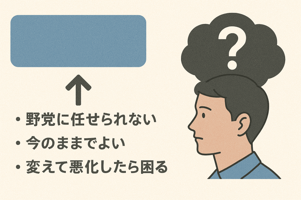 (2) 国民が変化を望まない(ように見える)理由:では、有権者側の意識はどうでしょうか。「なぜみんな自民党に入れるの?」「不満があっても行動しないのはなぜ?」という疑問が出ます。その背景にはいくつかのポイントが考えられます。
