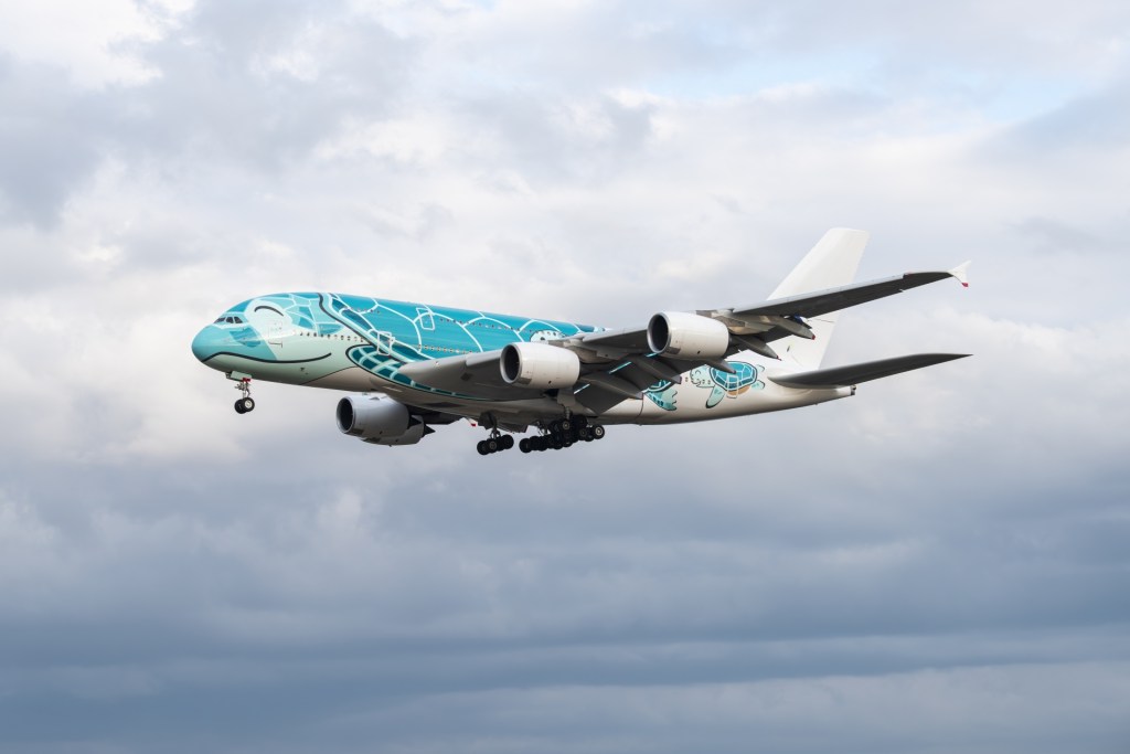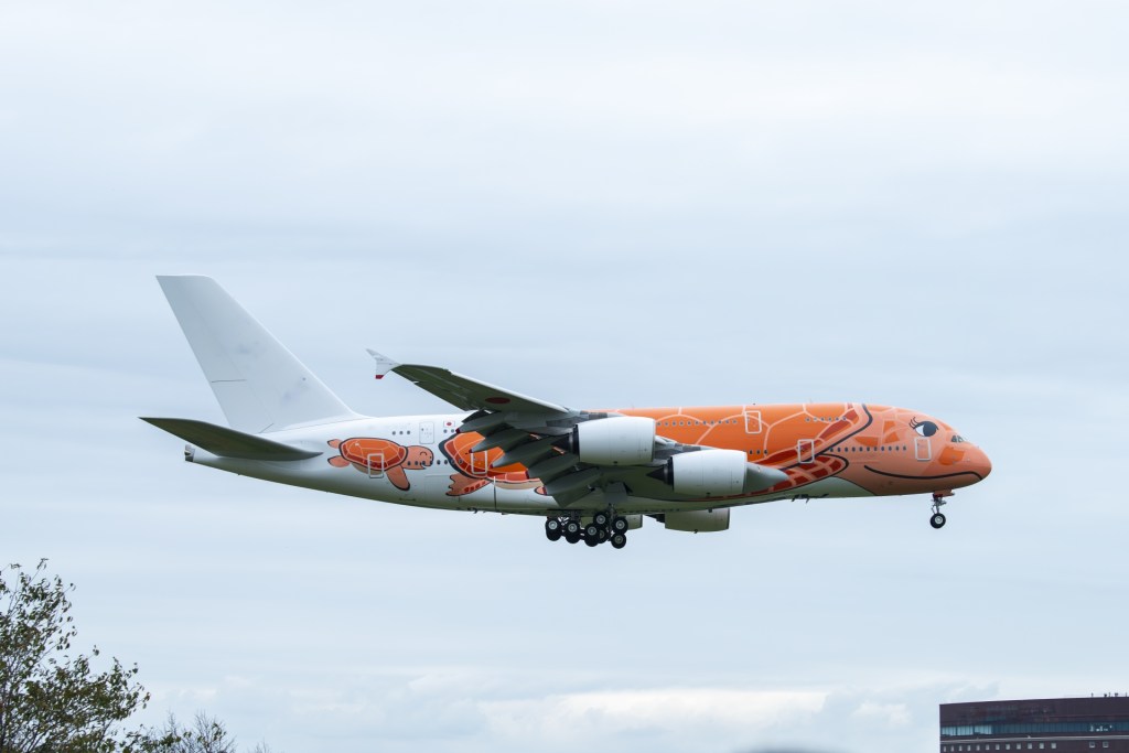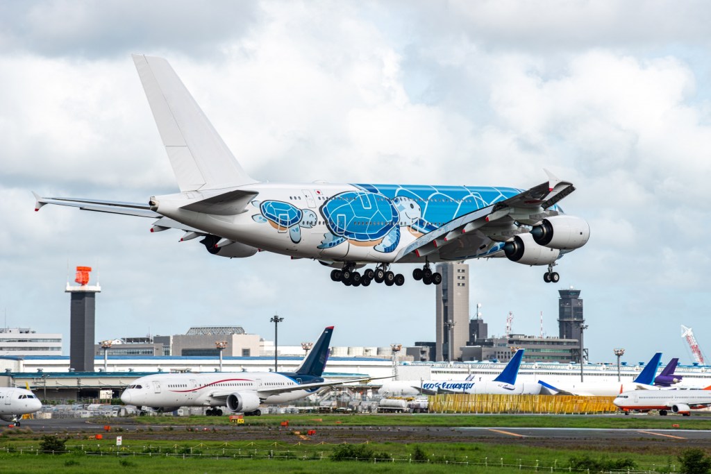| ANA (全日本空輸) | 成田 ⇔ ホノルル | 「フライング・ホヌ」の愛称で親しまれる、世界で唯一カメのデザインが施されたA380。ハワイ専用機として運用。 |